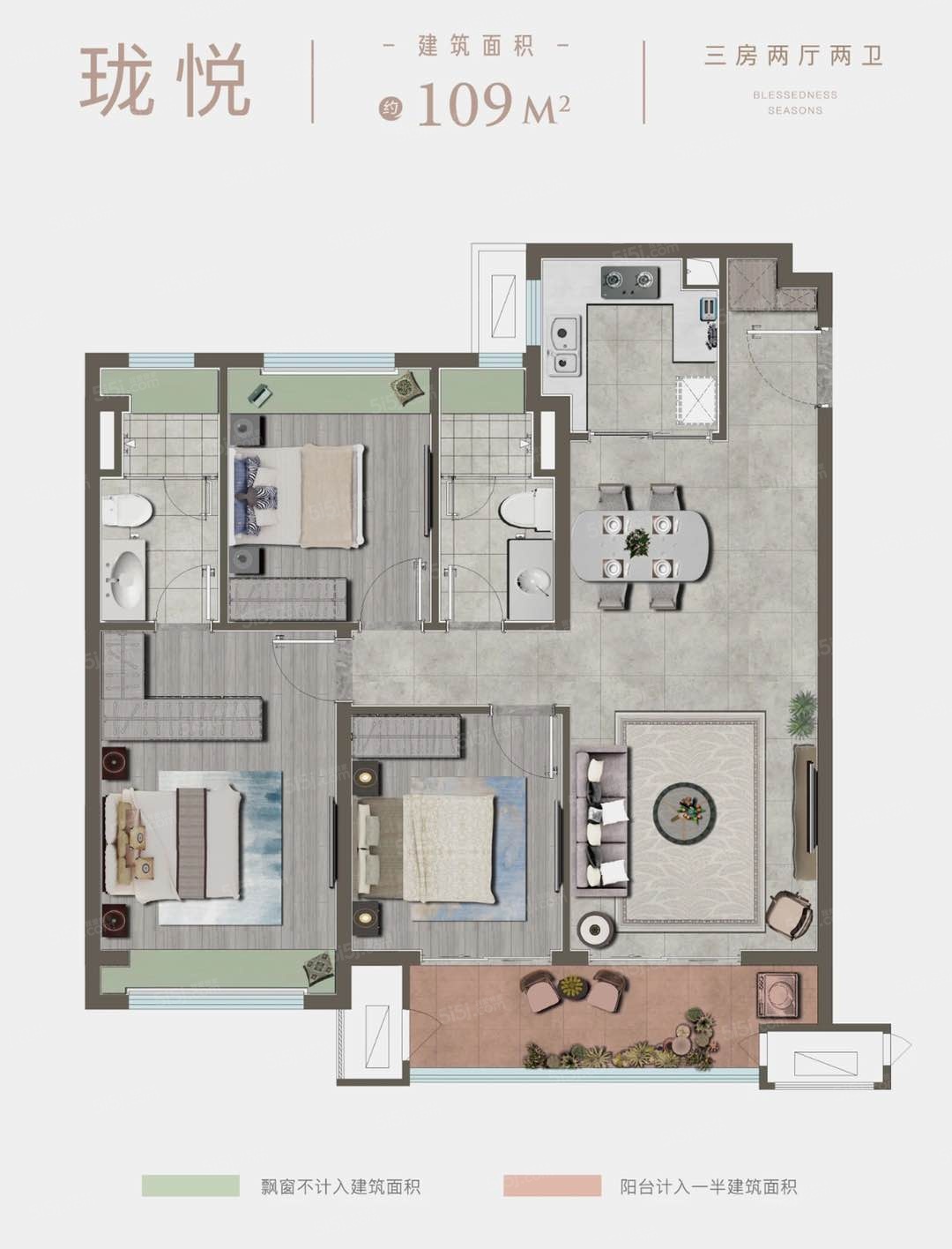 【布局】 全明格局,双阳台,大飘窗,主卧套房