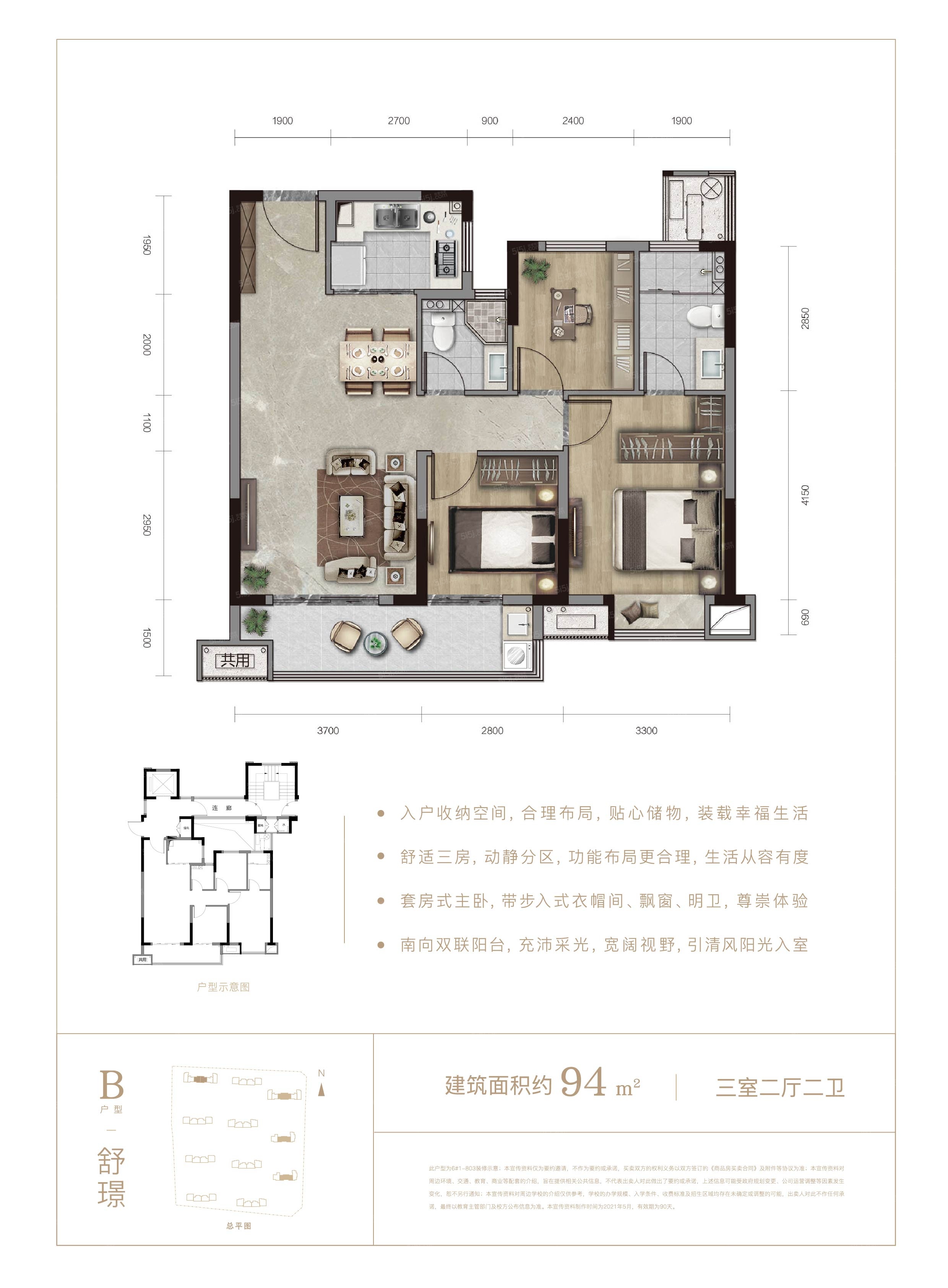【布局】 1、餐厨错落有秩、三开间朝南